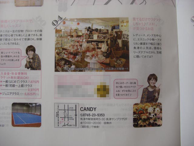 富山のフリーペーパーと言えば数誌ありますが、そのなかで「FAVO・ファーボ」というフリーペーパーの「呉東版・呉東の本」というのが発行されCANDYが掲載されています