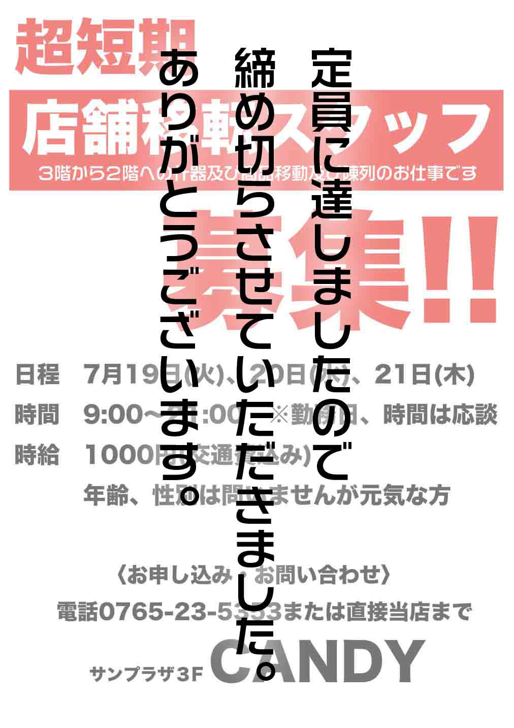 それにともないまして移転をお手伝いしていただけるお仲間さんを募集なのでございます
