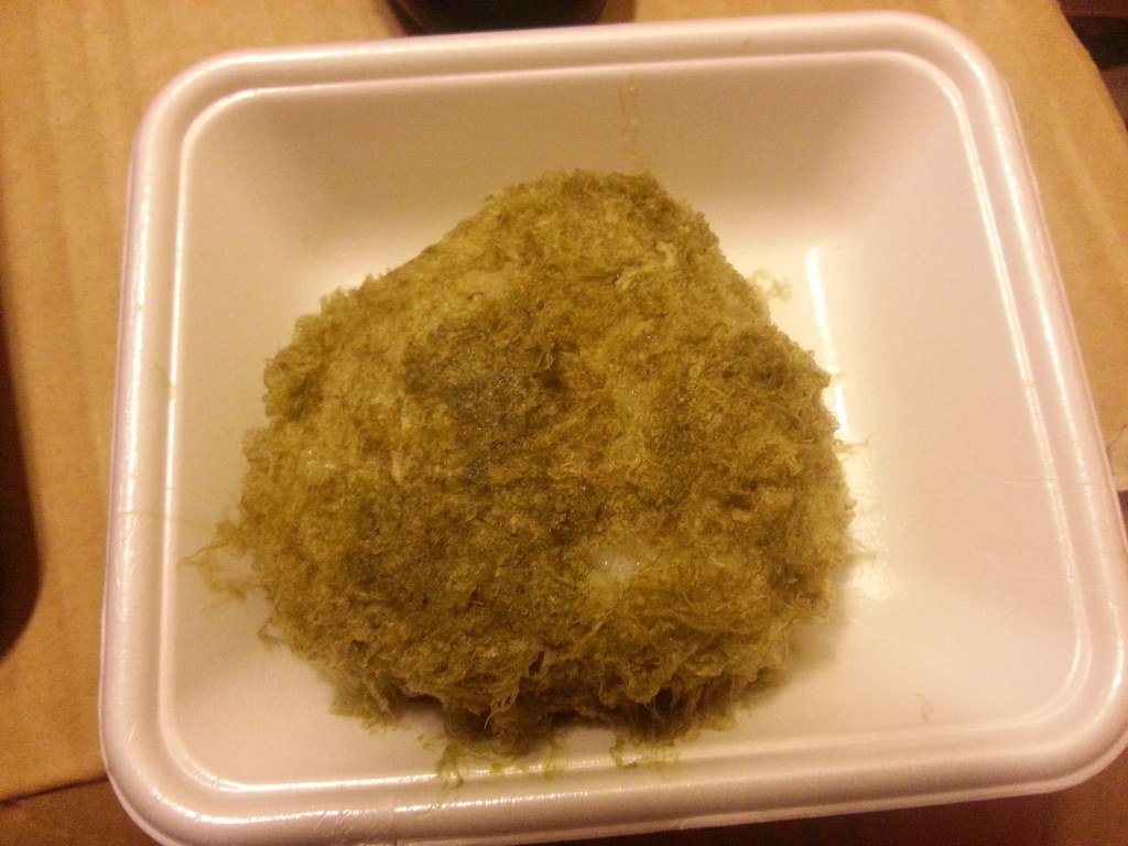 黄な粉をつけたお餅?まりも?ジャンクフード??