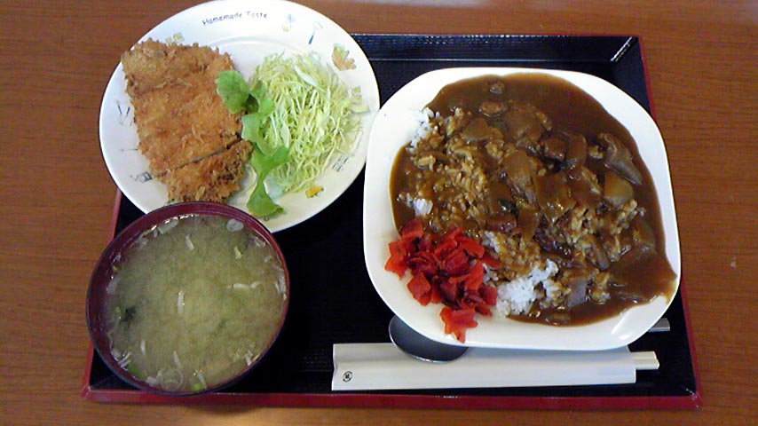 毎度のサンプラザ1F「五半屋」さんでのお昼ごはんです!本日は「カレーライス(ビーフ)」です♪ ここのカレーはコクがありスキー場のカレーを思い起こさせるなんとも至福な一時を過ごさせてくれます(^o^)お値段は450円で今回はオプションのとんかつ(200円)と味噌汁(130円)も…いや~贅沢贅沢♪