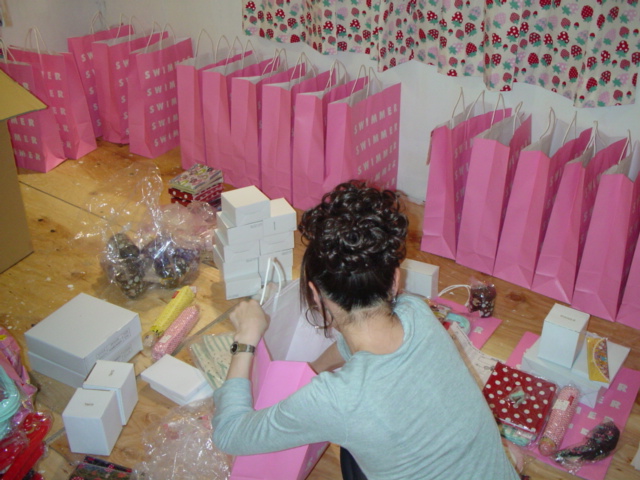 本日スイマー福袋の袋詰めです♪ 本当はメーカーさんのほうで袋に詰めて送ってくると思ったらしっかり「バラバラ」で送られてきました(>_<)もっと早くからこの作業をするべきだったのかもしれませんがそこは「B型」…「ギリギリ」が信条です(^o^;写真の人は女装をした自分…ではありません(^o^) 女性スタッフです★